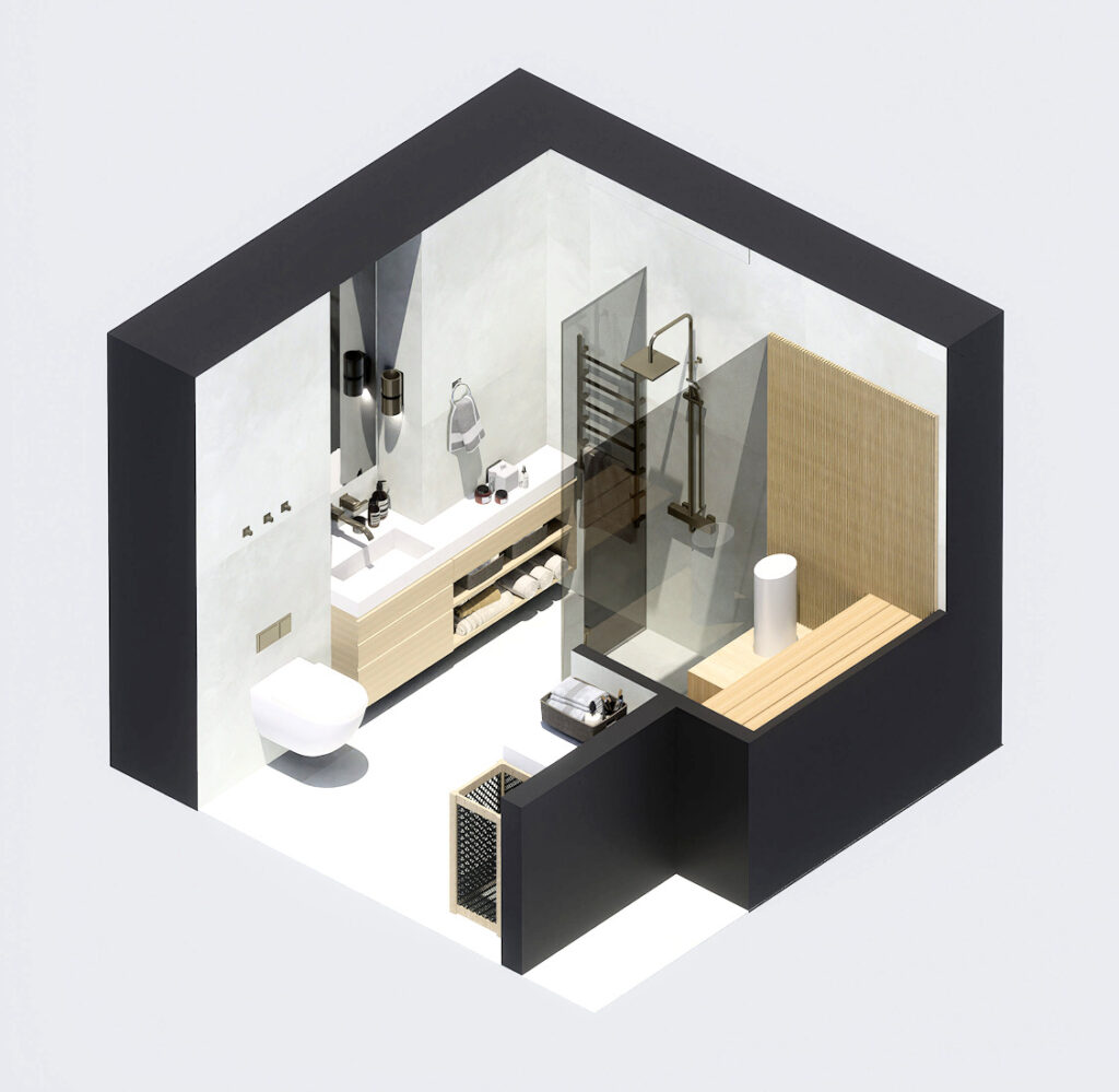 Prosessimme alkaa yhteistyöstä kanssasi, jotta ymmärrämme tarkat tarpeesi ja mieltymyksesi. Tämän jälkeen tehdään useita pohjaratkaisuehdotuksia, joista valitaan yksi, jota lähdetään jalostamaan. Detaljisuunnittelussa käytetään 3D -mallinnusta hyödykseen. Tämä auttaa tilan hahmottamisessa ja esim. värien ja valojen suunnittelussa. Luodaan digitaaliset kuvat uudelleensuunnitellusta pohjaratkaisusta sinulle, yhtiölle, kalustetoimittajille ja työmaalle. Tämä sisältää tarkat mittakuvat ja selkeän visuaalisen edustuksen lopputuloksesta.